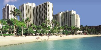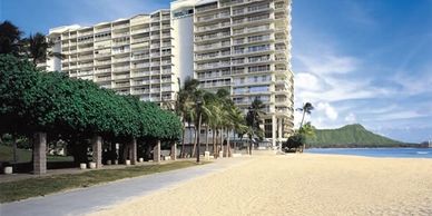 Deluxe oceanfront condominium resort ideally located on world-famous Waikiki Beach. Each of its spacious, air conditioned, fully furnished studio, one and two-bedroom units are open to ocean views with large lanais and offer all the comforts of home. Studios come with kitchenettes, and one- and two bedroom units include a living room and a kitchen with dishwasher, coffeemaker, microwave oven, range and refrigerator.